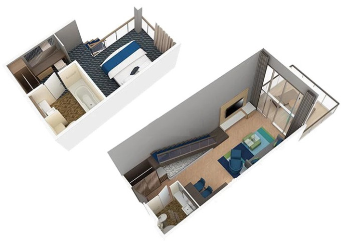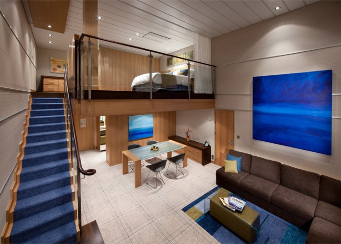 | L1 - Crown Loft Suite s balkónom 68 m² + balkón 13 m². 2-podlažný apartmán. 17. paluba. Max 4 osoby. Výhody Royal Suite Sky Class. | 11 289 € 11 289 € za osobu | ||