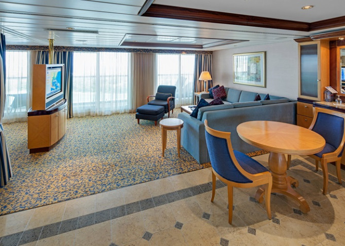 | VT - Ocean View Suite / 2 spálne 54 m². Veľké neotvárateľné okná. 2 spálne, 2 kúpeľne. 10. paluba. Max 8 osôb. Výhody Suite. | 5 534 € 5 534 € za osobu |